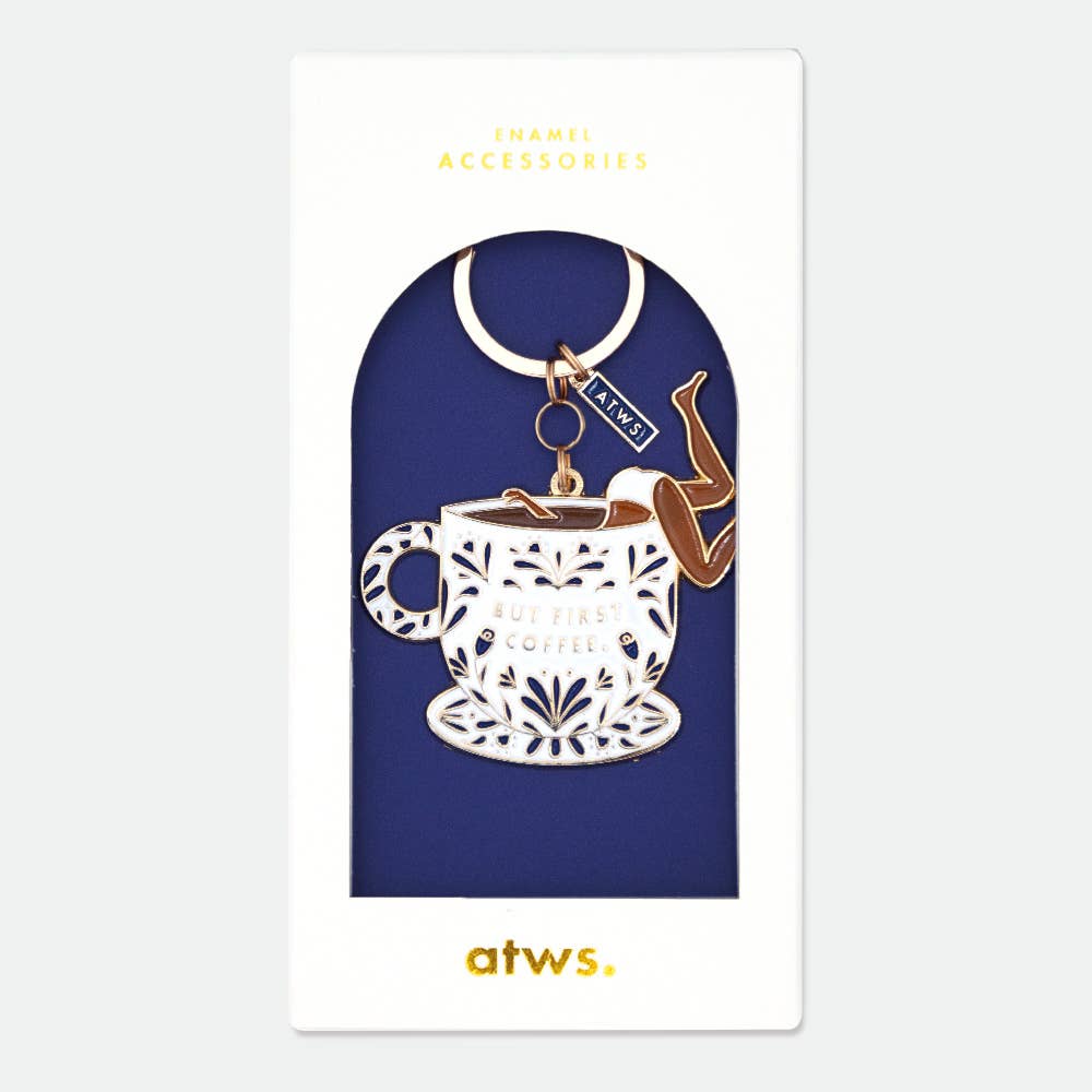 Für alle, die ohne Kaffee nicht in den Tag starten: Dieser charmante Schlüsselanhänger mit der Aufschrift „But First Coffee“ bringt deinen Lieblingsmoment direkt an Schlüssel oder Tasche. Mit seinem goldfarbenen Emaille-Finish vereint er Stil und Statement – perfekt für Kaffeeliebhaber:innen, die das Leben mit einem kleinen Augenzwinkern geniessen.