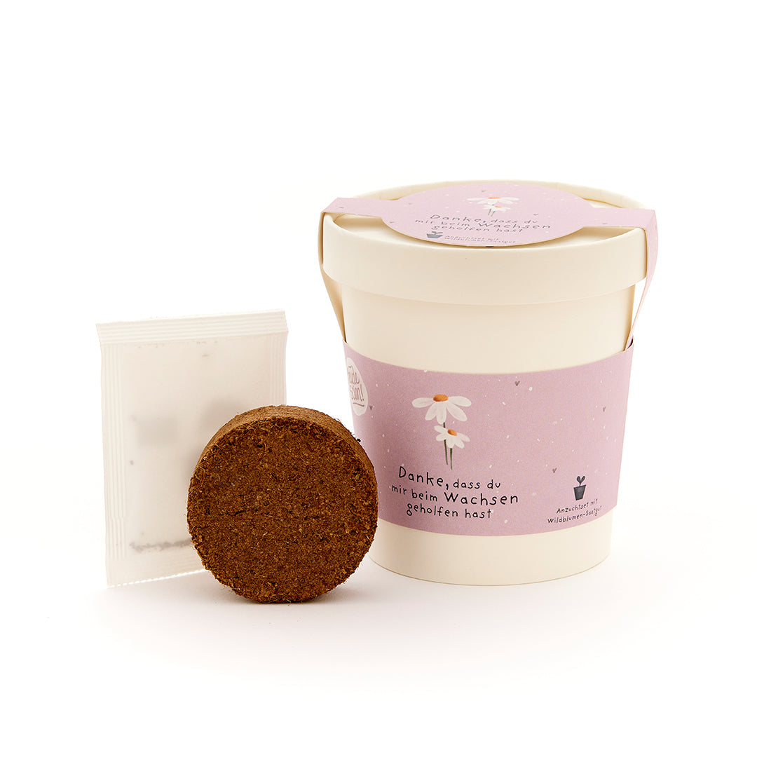 – Anzuchtset im Becher mit Samen, Quelltablette und Anleitung
