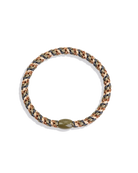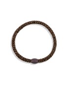 Die glatte, recycelte Perle verhindert Ziepen – und macht das Haargummi auch am Handgelenk zum minimalistischen Accessoire.