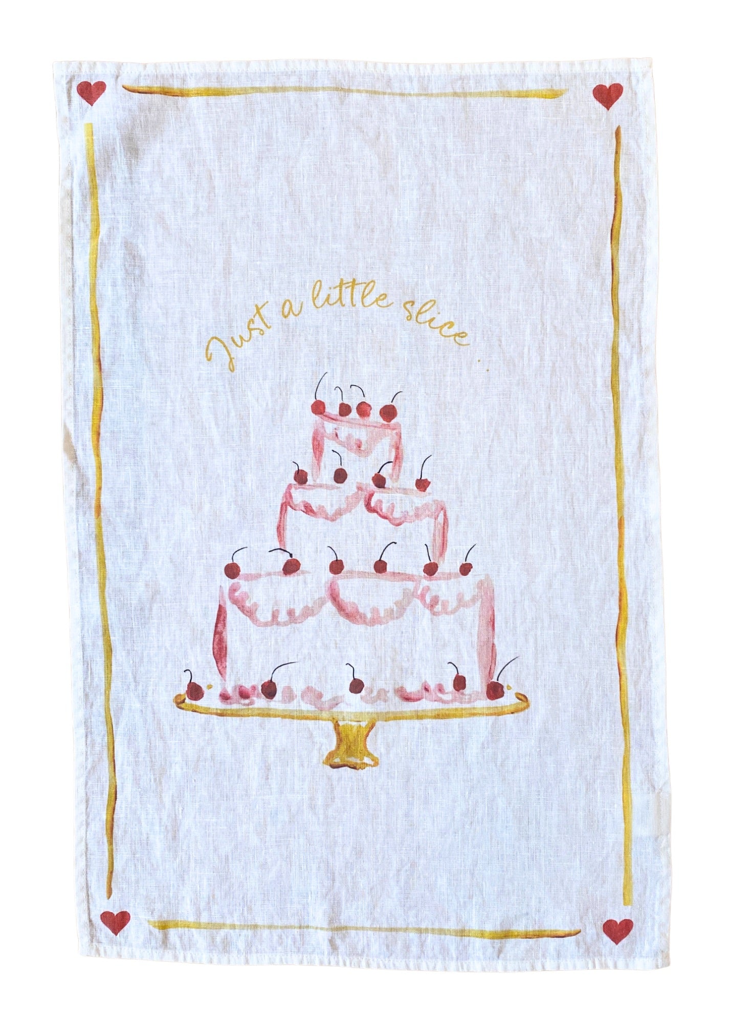 Ein ganzes Stück vom Glück: Das humorvolle Motiv „Just A Little Slice“ zeigt eine köstlich illustrierte Torte, die sofort Lust auf Dessert macht. Mit seinem verspielten Stil bringt das handgezeichnete Design gute Laune in deine Küche – charmant, einzigartig und alltagstauglich.