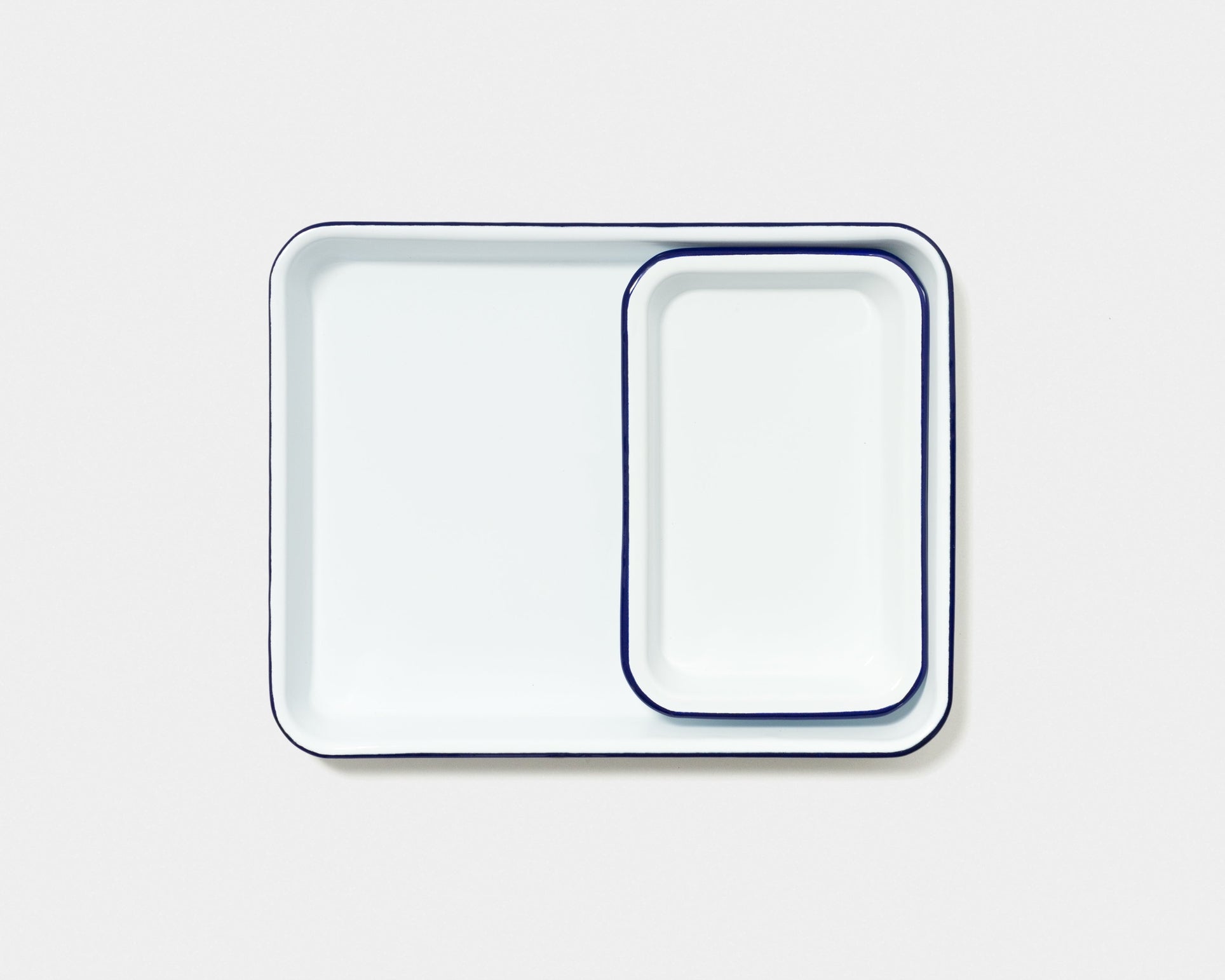 Das grosse Tablett eignet sich dank seiner tiefen Form ideal zum Backen oder Servieren. Das kleine Tablett ist perfekt für Snacks, kleine Portionen oder als Ablage für Schlüssel und Kleinigkeiten. Beide Varianten lassen sich leicht stapeln, sind spülmaschinenfest und überzeugen mit ihrem ikonischen Emaille-Design.