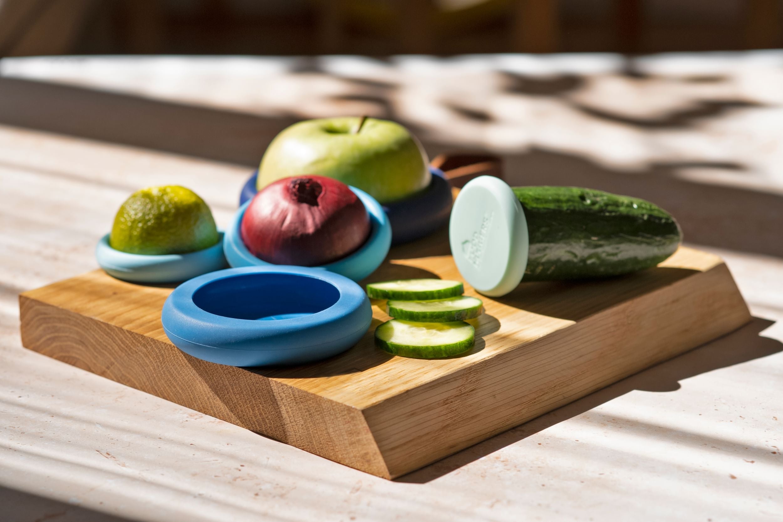 Die farbenfrohen Silikonhüllen von Food Huggers sind die clevere Lösung, um Lebensmittel frisch zu halten – ganz ohne Frischhaltefolie oder Plastikbeutel.
