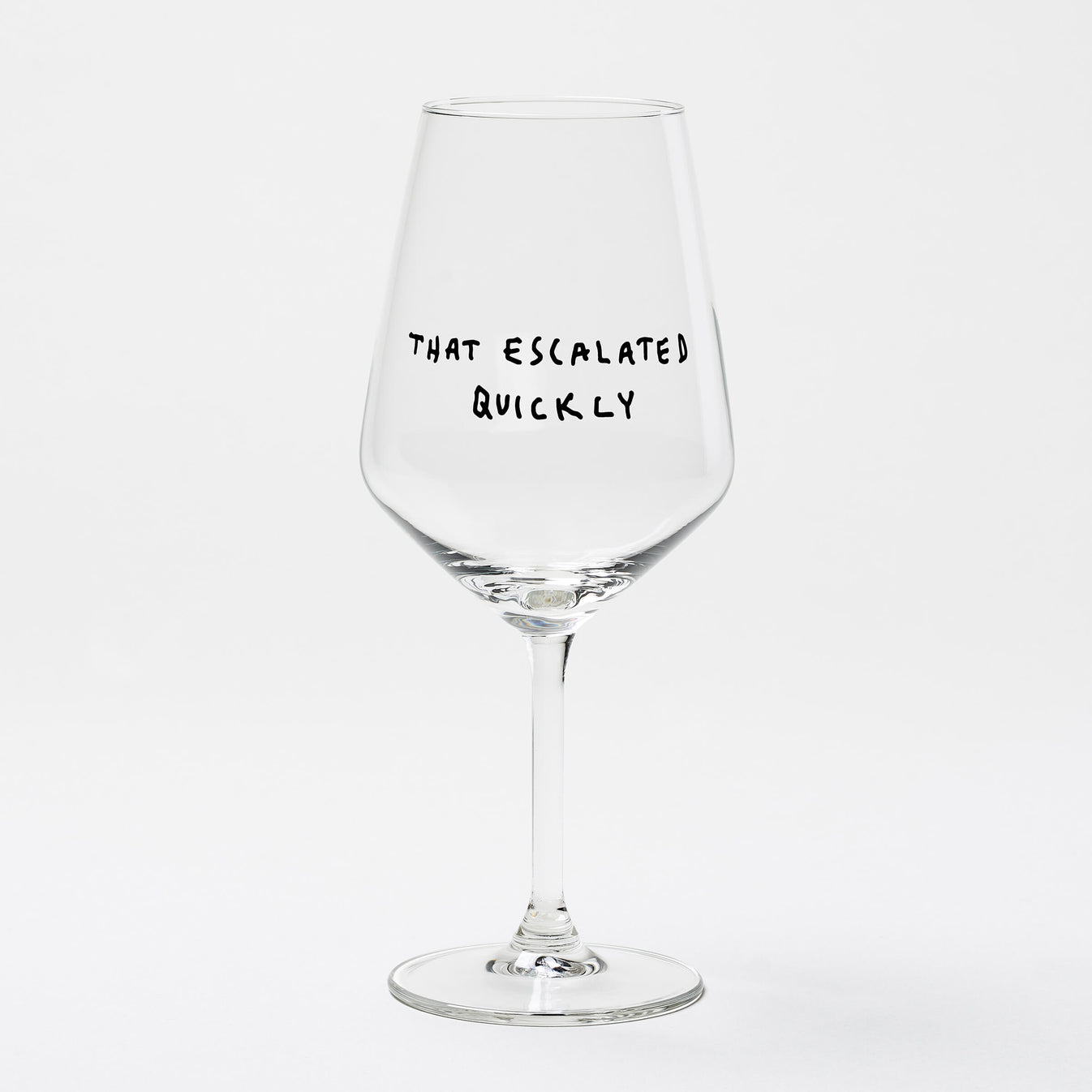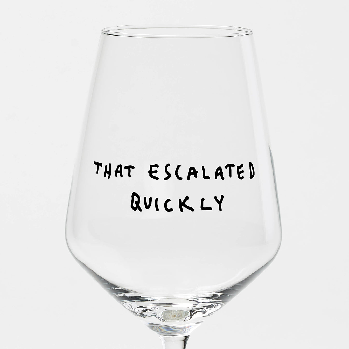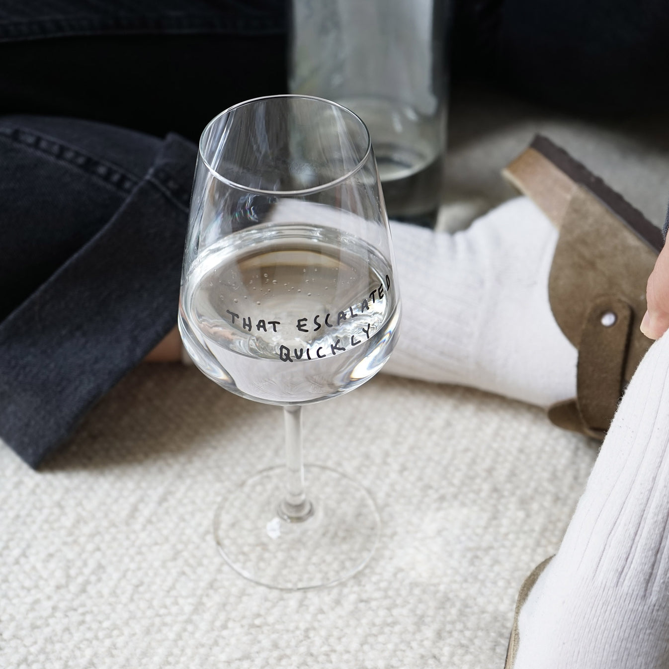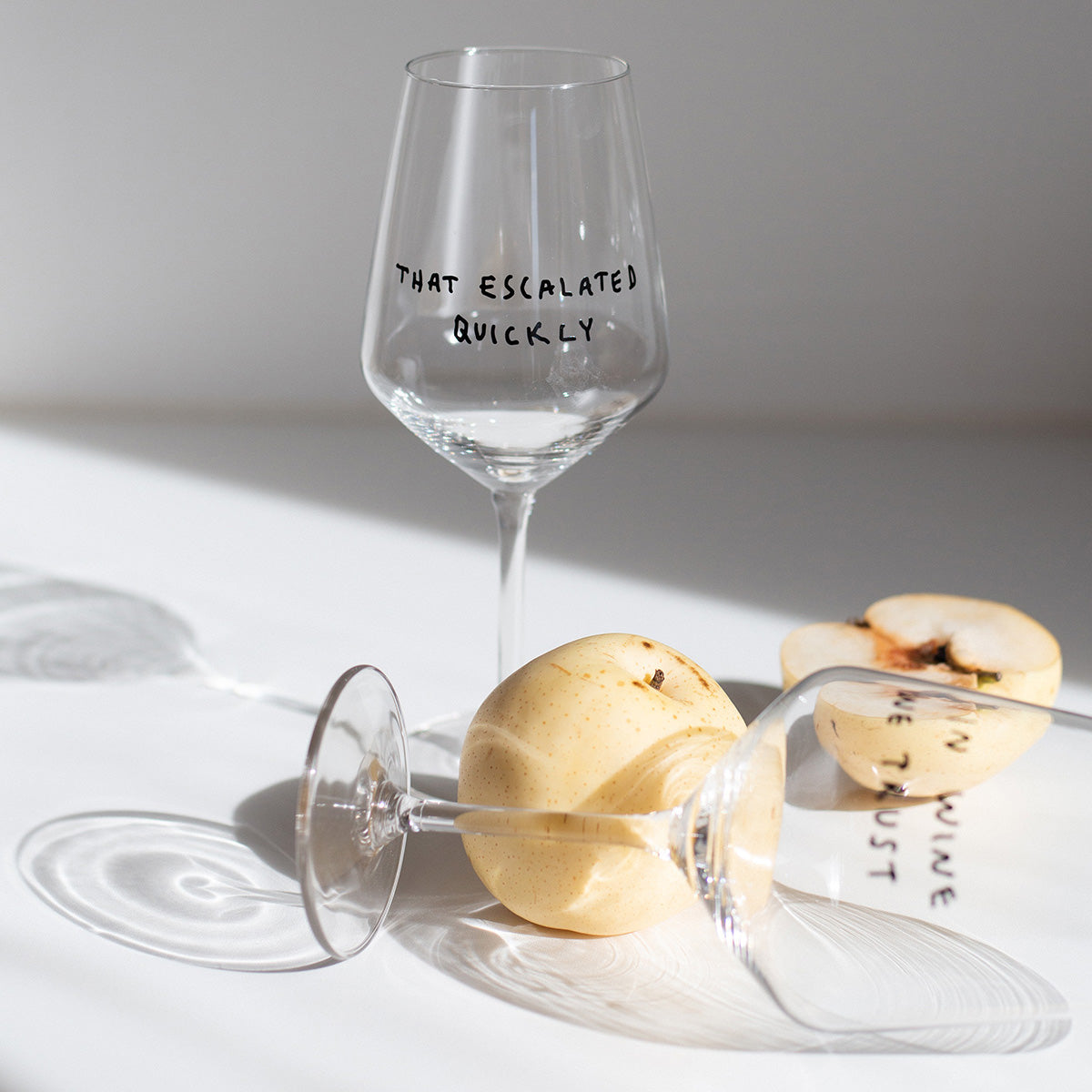 Du kennst das: ein Glas Wein, zwei Gläser … und plötzlich ist der Abend legendär. Das „That Escalated Quickly“-Weinglas bringt genau diesen Humor auf den Punkt – perfekt für gesellige Abende, spontane Aperos oder als witziges Geschenk für deine Lieblingsmenschen.