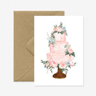 Diese charmante Hochzeitskarte mit rosa, blumengeschmückter Torte bringt Glückwünsche stilvoll auf den Punkt. Die sanften Pastellfarben, zarten Blumen und das feine „Congrats“ machen sie zur perfekten Begleitung für den schönsten Tag im Leben – ob zur Hochzeit oder Verlobung.