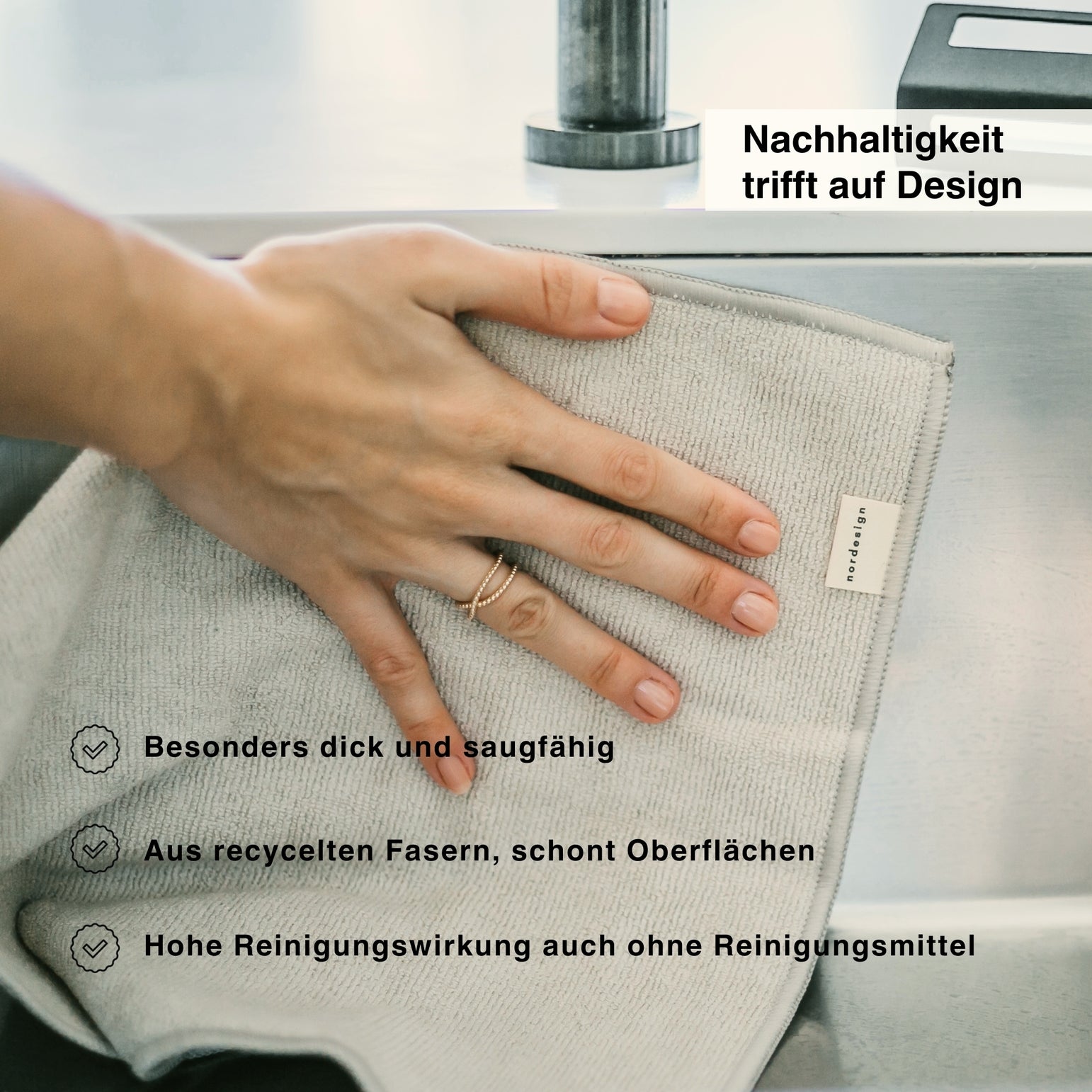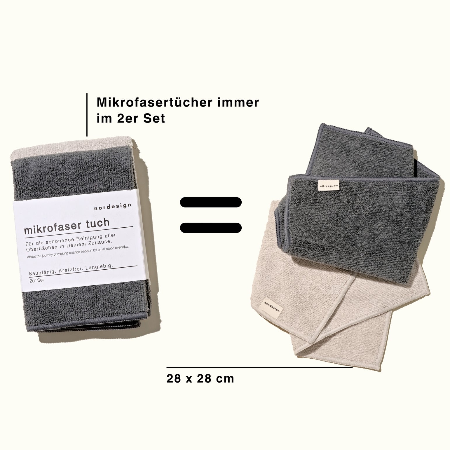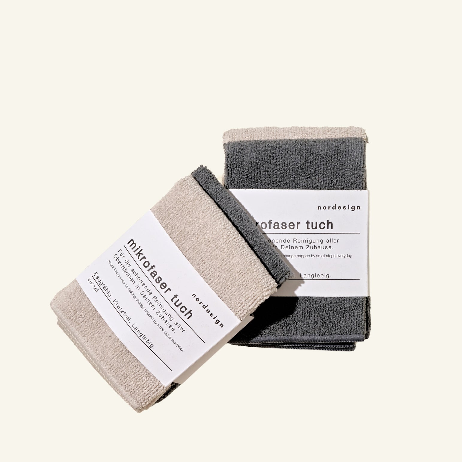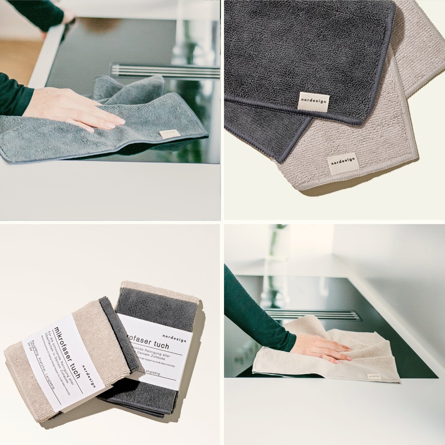 Minimalistisch im Design, stark in der Leistung: Das nordesign Mikrofasertuch-Set kombiniert skandinavische Ästhetik mit nachhaltiger Funktionalität. In den Farben Beige und Dunkelgrau gehalten, passen die Tücher stilvoll in jedes moderne Zuhause.