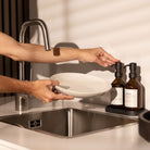 Neben dem Spülbecken bietet es Platz für Spülmittel, Seifenspender und Schwämme. Im Bad setzt es Parfum, Schmuck oder Pflegeprodukte perfekt in Szene. Auch im Wohnzimmer oder auf dem Esstisch lässt sich das Tablett dekorativ einsetzen – für Kerzen, Salz und Pfeffer oder deine Lieblingstasse.