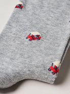 Bereit für eine Spritztour? Mit The Buggy von The London Sock Exchange geht’s direkt auf den Fairway. Auf hellgrauem Hintergrund rollen kleine rote Golf-Buggys über den Stoff – ein augenzwinkerndes Design, das den Spirit des Golfsports einfängt. Perfekt für alle, die ihr Spiel auch abseits des Platzes stilvoll feiern möchten.