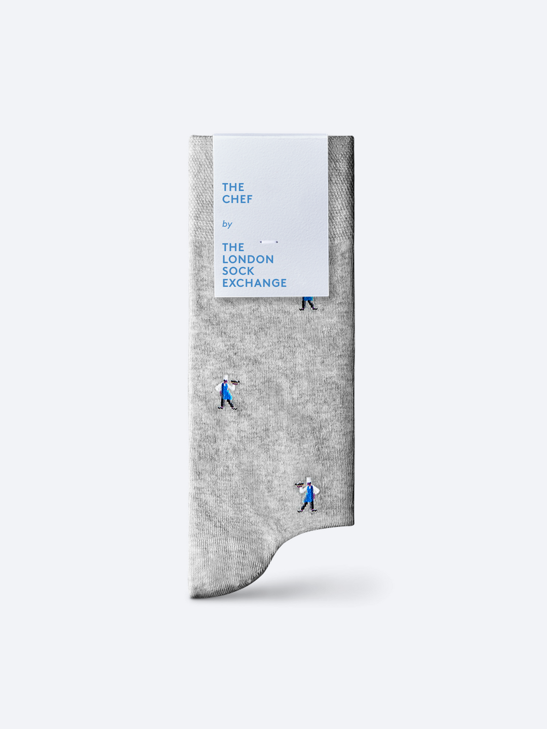 Mit The Chef von The London Sock Exchange servierst du Stil mit einer Prise Humor. Das verspielte Design zeigt kleine Köche in weissen Hüten und blauen Schürzen – perfekt für alle, die gerne am Herd stehen oder gutes Essen lieben.