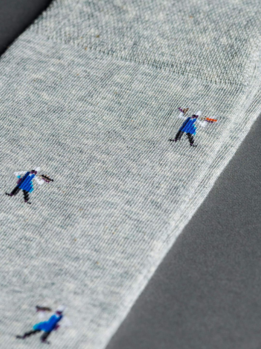 Mit 200 Nadeln gestrickt – weit mehr als bei herkömmlichen Socken – entsteht ein besonders dichtes Maschenbild. Das macht sie langlebig und bringt die Designs mit aussergewöhnlicher Detailgenauigkeit zur Geltung.