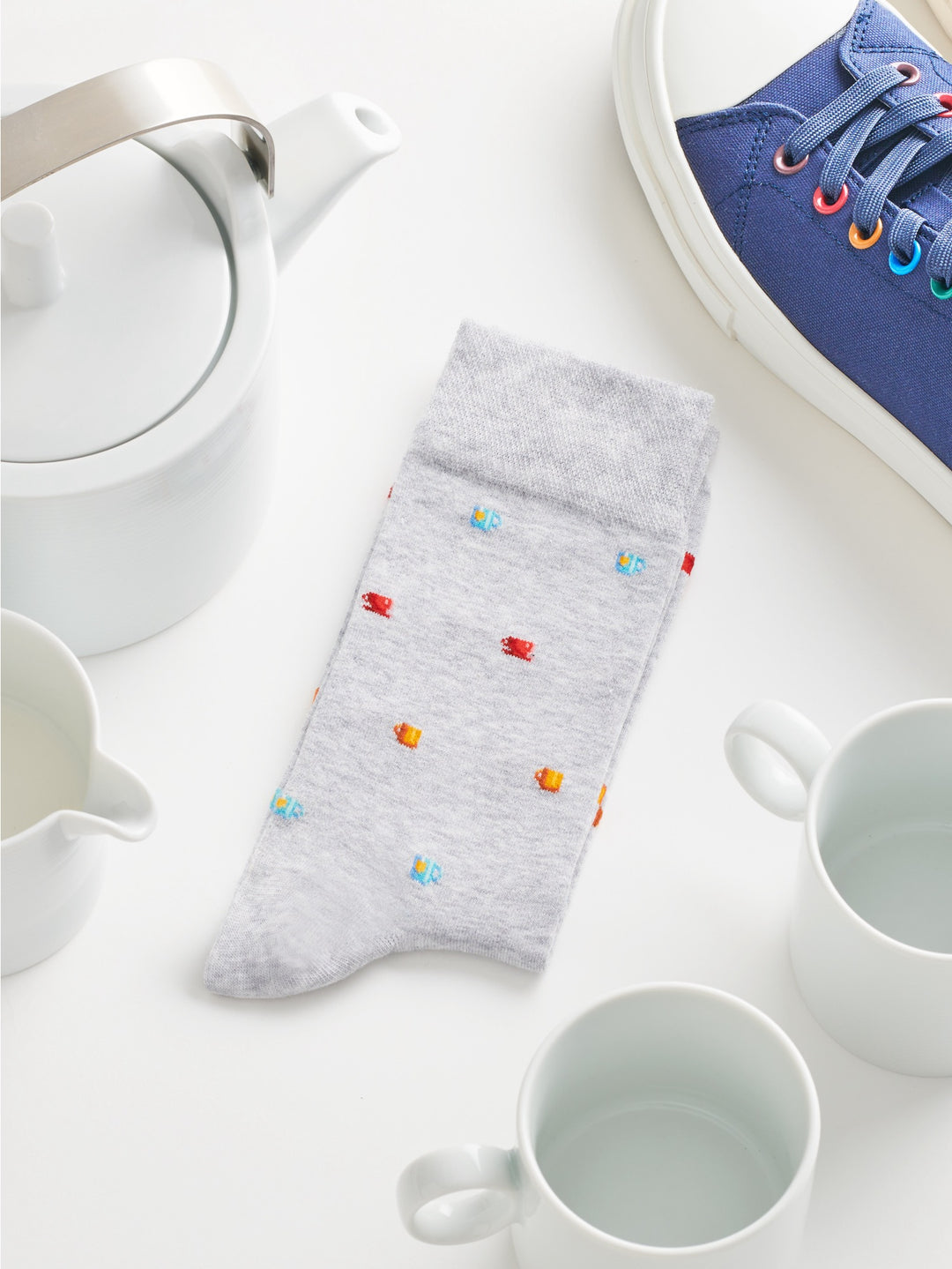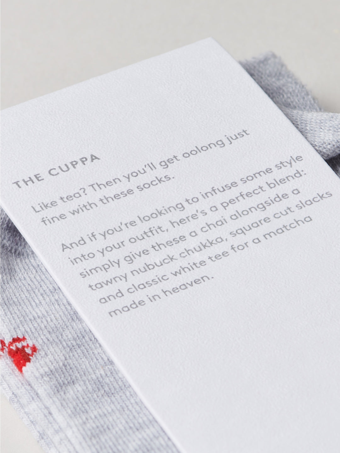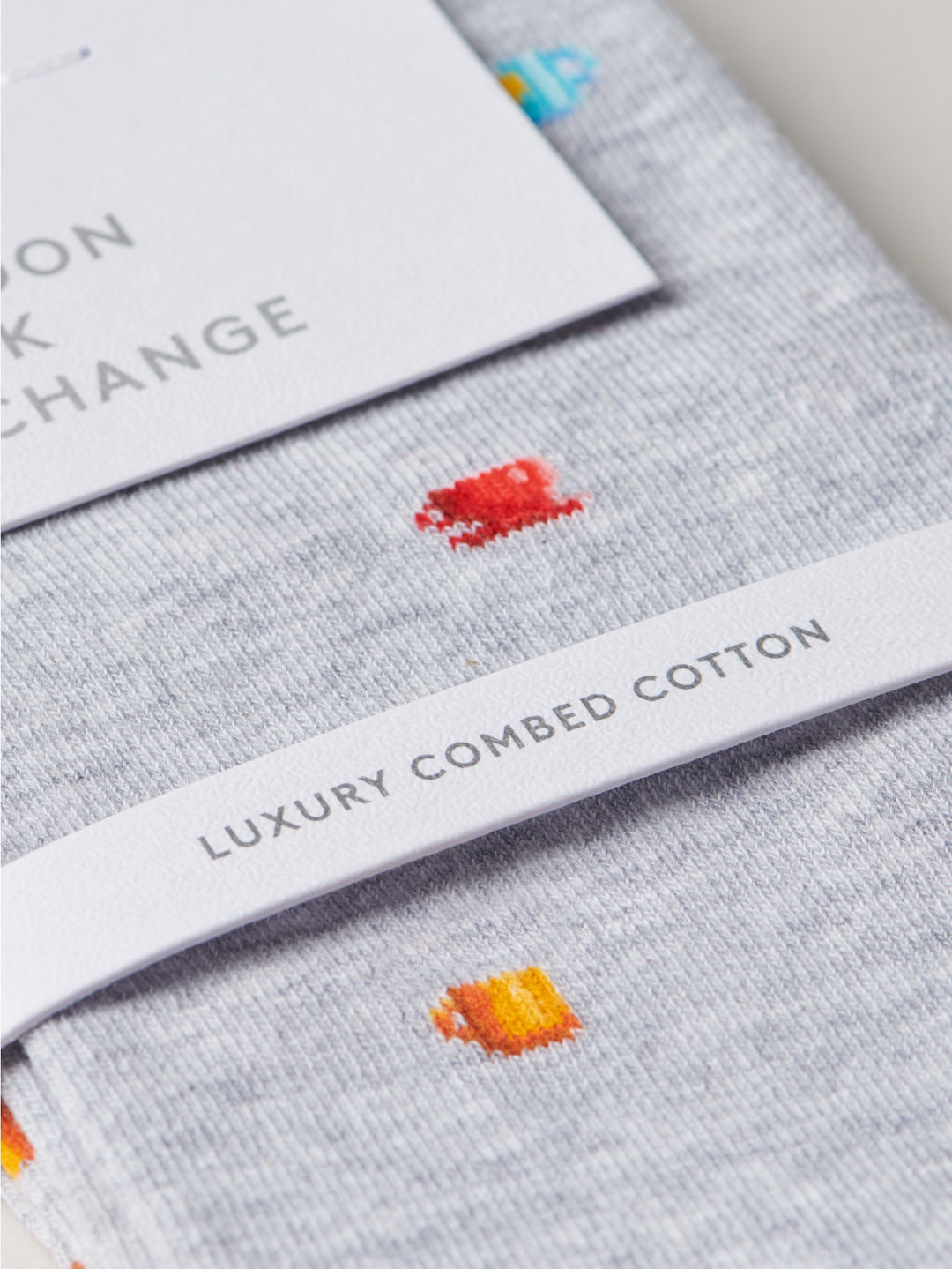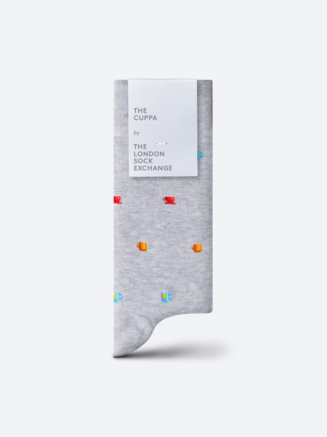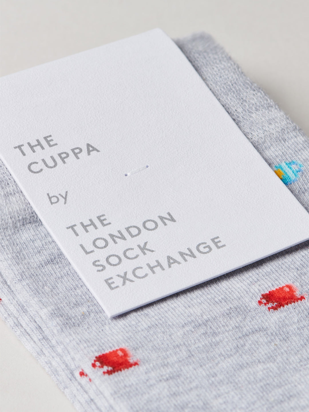 Zeit für eine Pause: Die Socken The Cuppa von The London Sock Exchange bringen britische Teekultur direkt an den Fuss. Das verspielte Design mit farbigen Teetassen auf hellgrauem Hintergrund sorgt für einen charmanten Farbakzent und ist ideal für alle, die ihre „Cuppa“ genauso lieben wie guten Stil.