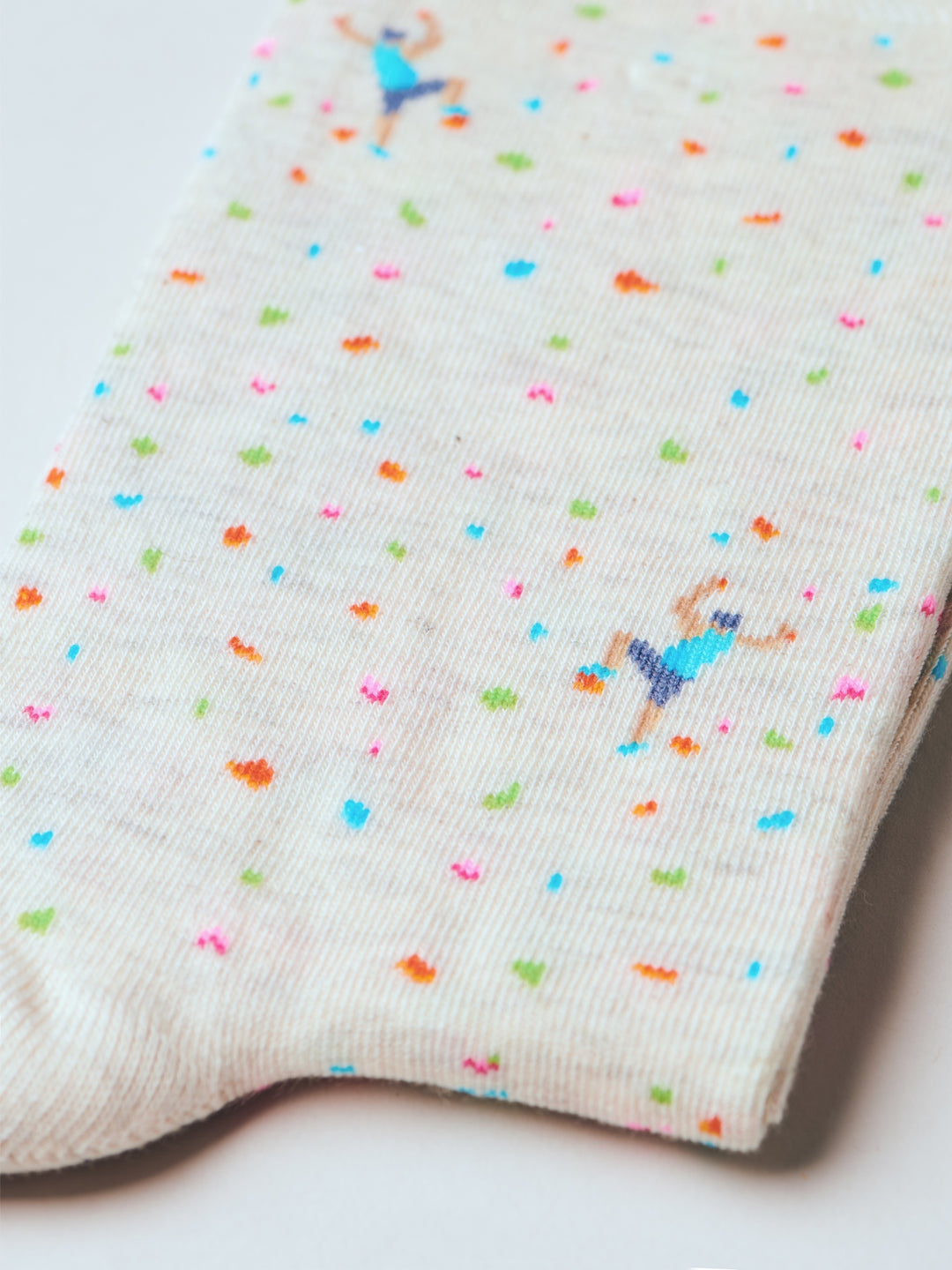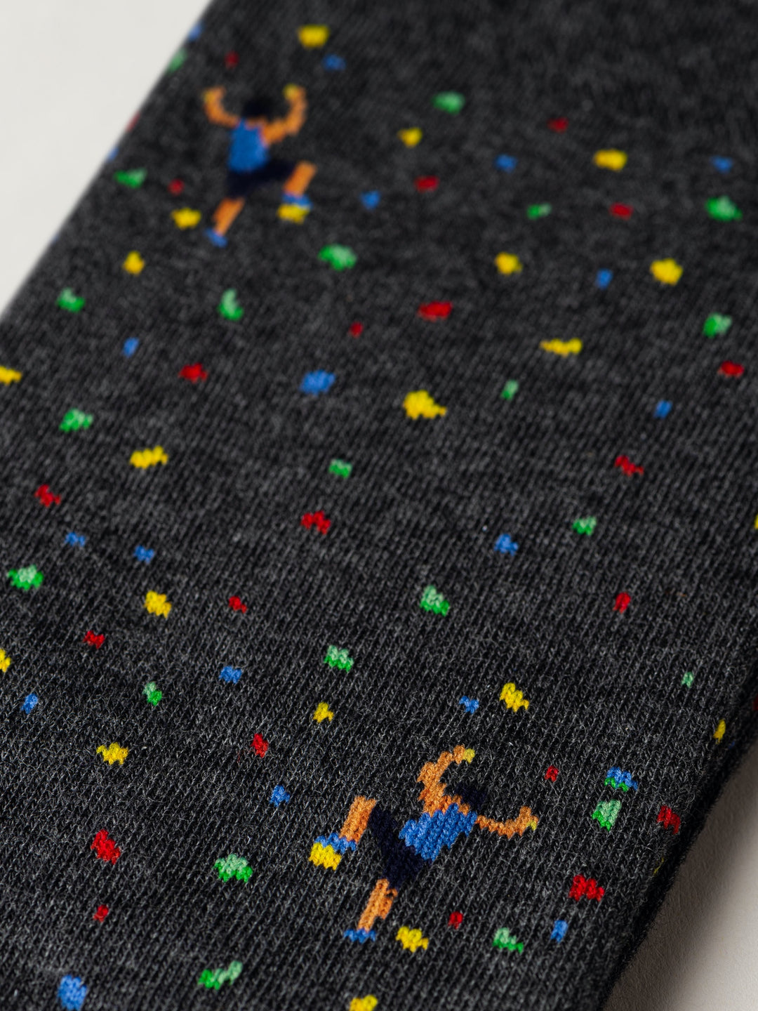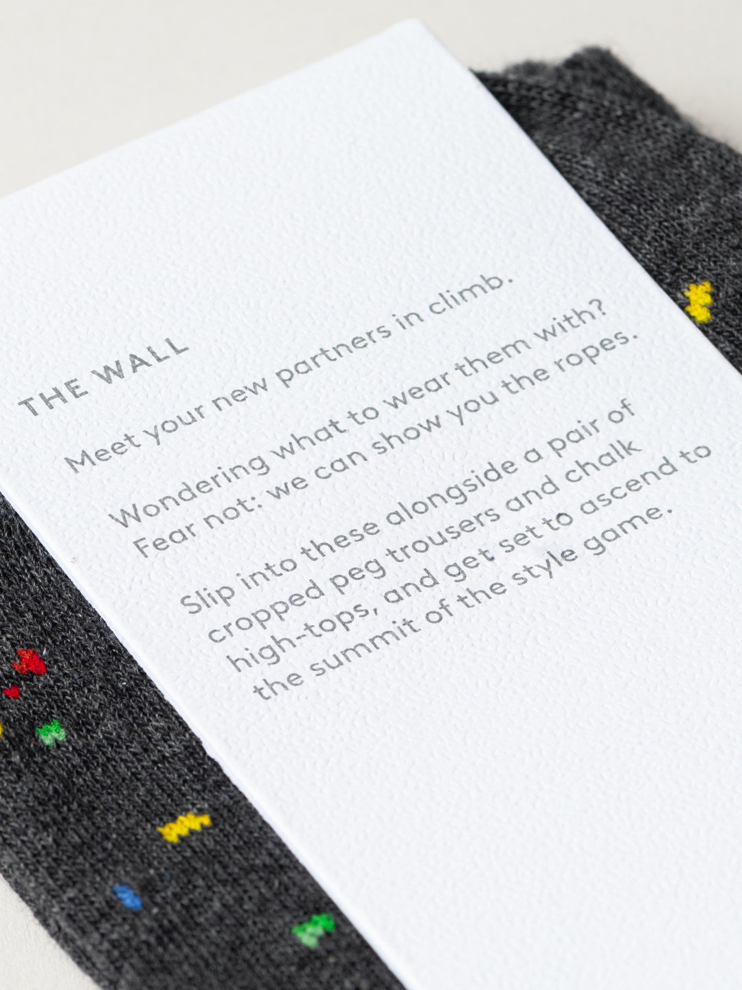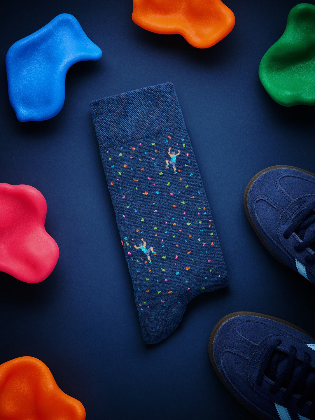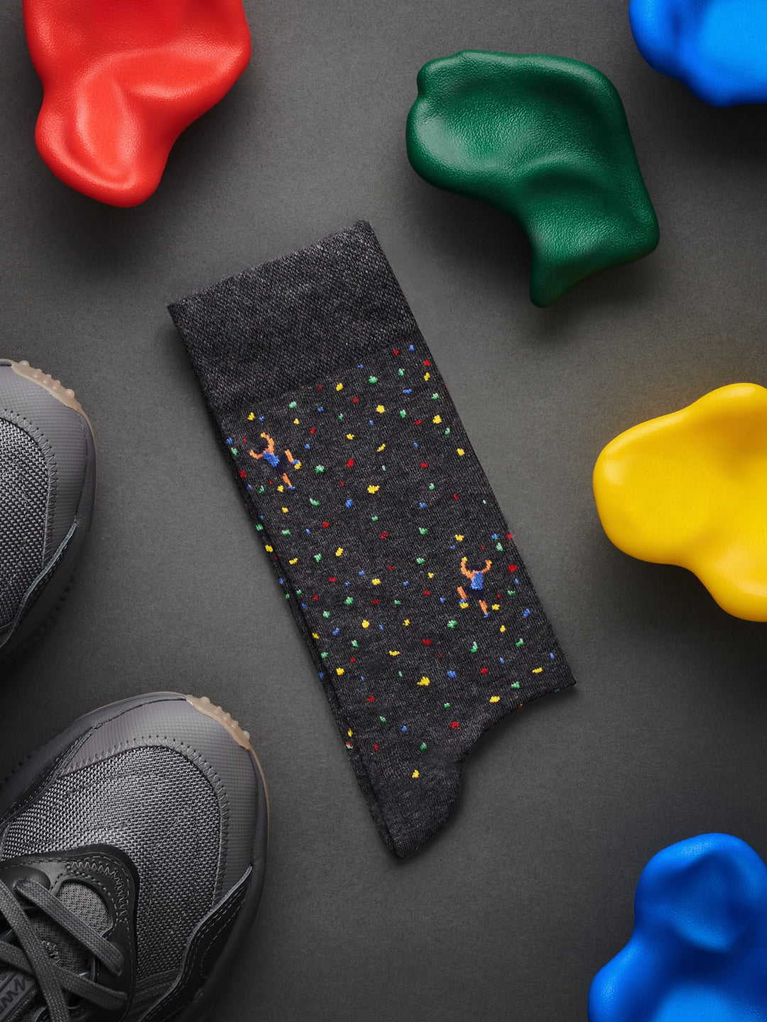 Stylisierte Klettergriffe, wild verteilt wie an einer Boulderwand – The Wall bringt sportlichen Nervenkitzel an den Fuss. Für alle, die gern hoch hinaus wollen – mit Grip und guter Laune.