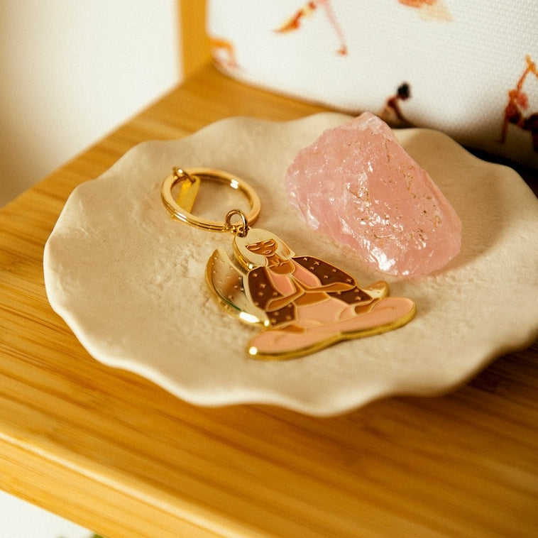 Ein Symbol für Ruhe und spirituelles Gleichgewicht: Der Lotus Schlüsselanhänger vereint schlichte Eleganz mit tiefer Bedeutung. Mit seinem fein gearbeiteten Design und dem goldfarbenen Emaille-Finish ist er das perfekte Accessoire für Menschen, die Wert auf Stil und Achtsamkeit legen – ob an Schlüsselbund oder Tasche.