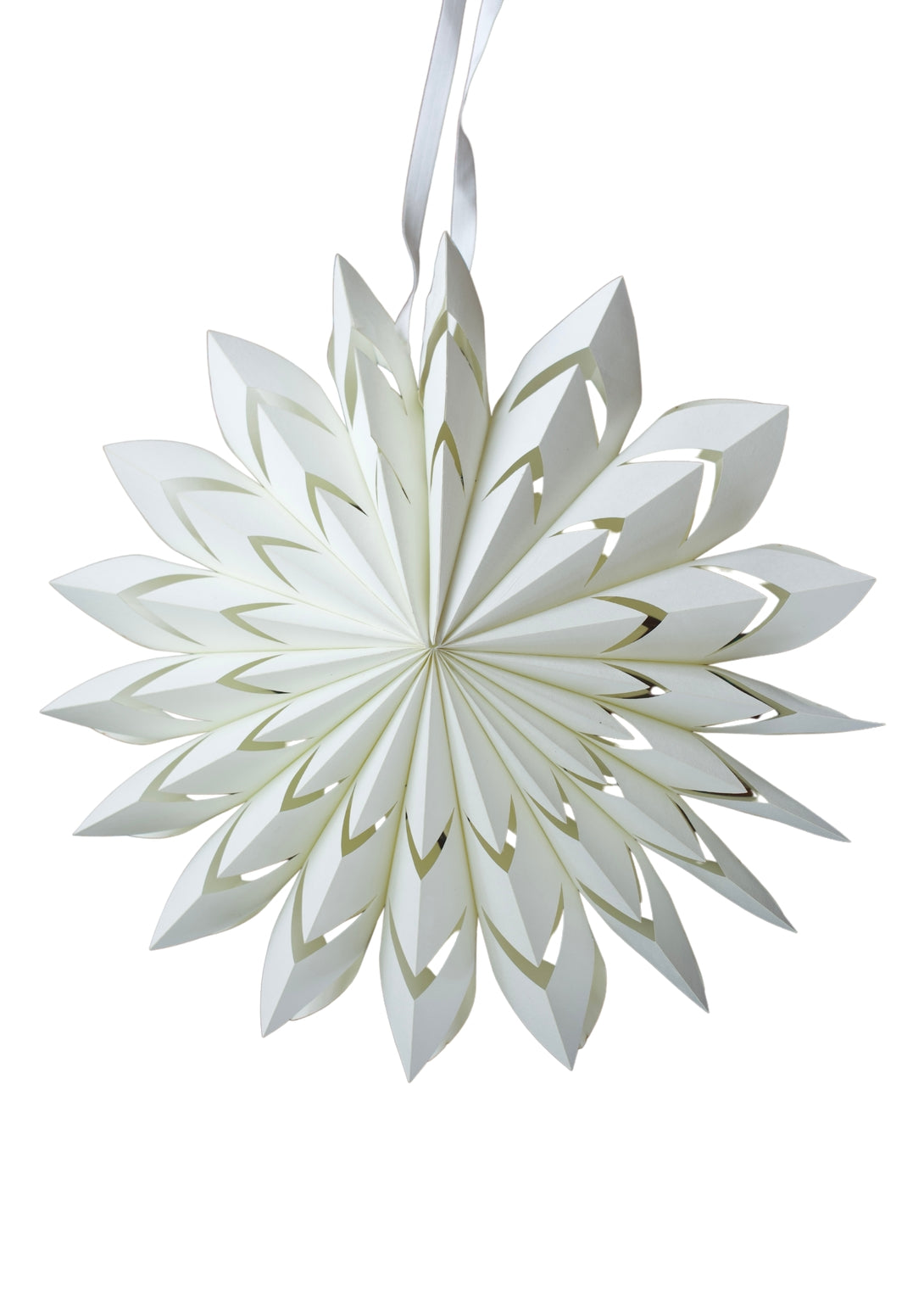 Ein klassischer Stern in modernem Design: Der grosse weisse Papierstern wird in Handarbeit aus 100 % recyceltem Baumwollpapier gefertigt und kann jedes Jahr wiederverwendet werden. Mit seiner klaren Form und den feinen Ausschnitten ist er ein stilvolles Highlight für Fenster, Türen oder Wände – perfekt für die Advents- und Weihnachtszeit.
