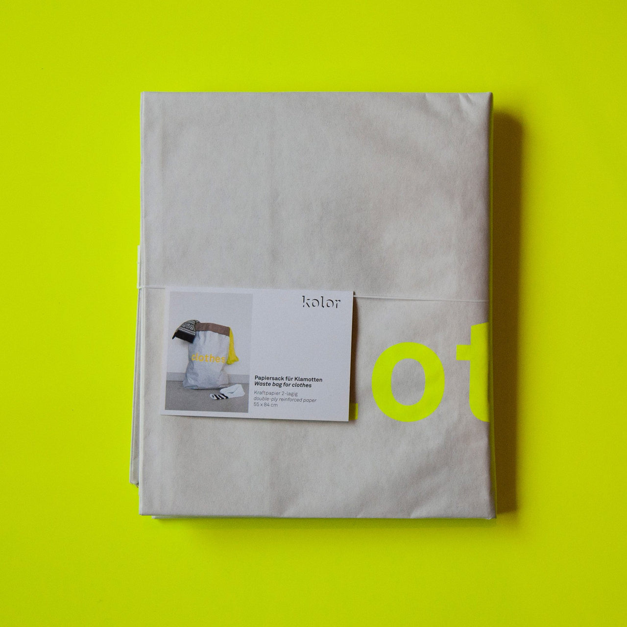 Die langlebigen Papiersäcke des Berliner Labels kolor sind mehr als nur praktische Aufbewahrung – sie bringen stilvolle Ordnung in Dein Zuhause. Das doppellagige Kraftpapier ist besonders robust und kann am Ende seiner Lebensdauer recycelt werden. Der Boden ist nicht geklebt, sondern hochwertig genäht – das sorgt für zusätzliche Stabilität und ein cleanes Design. Einmal aufgestellt und in Form gebracht, wird der Sack zum Designobjekt, das auch offen gesehen werden darf.