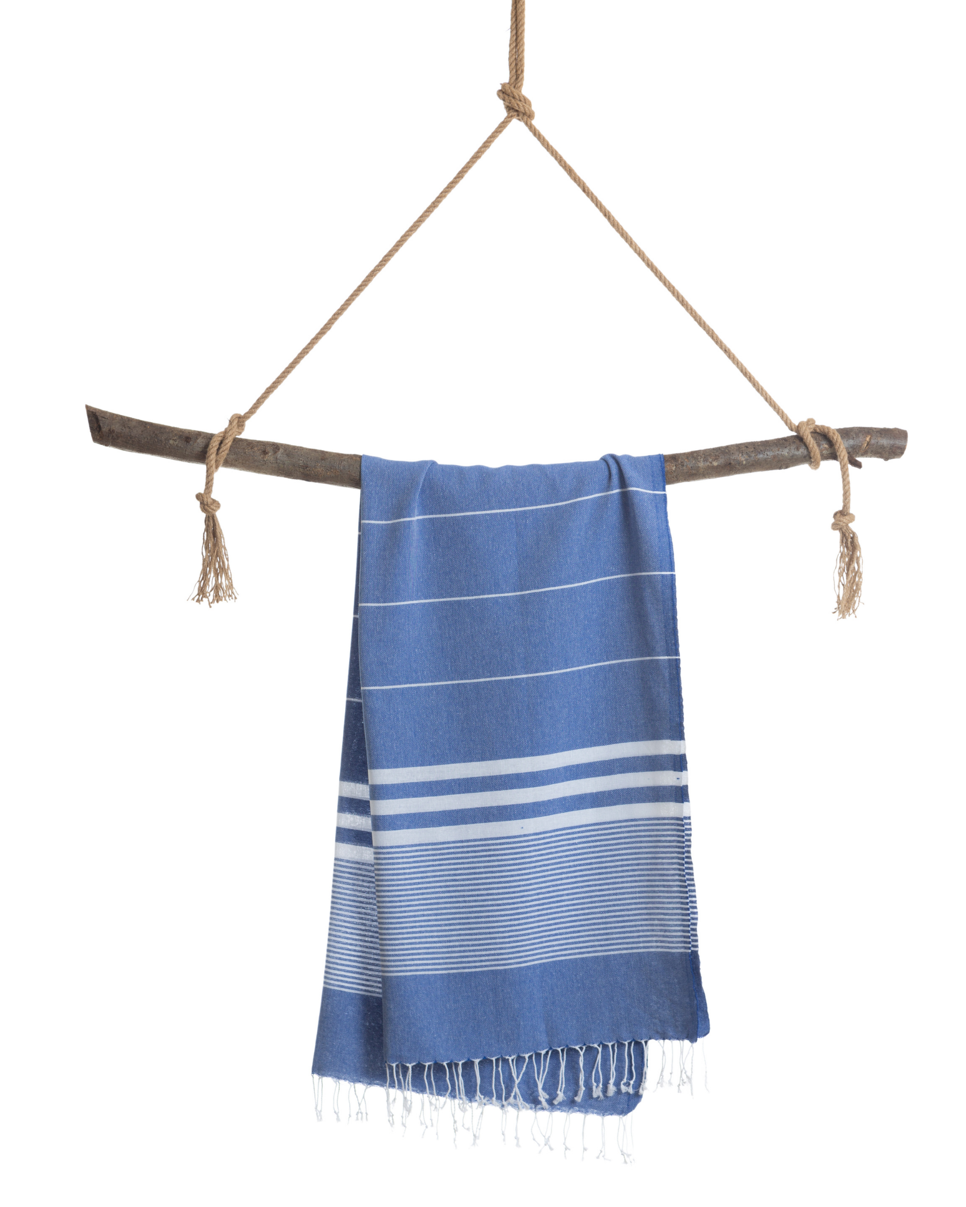 Das Malibu Hammam Tuch erinnert an sonnige Tage an der Westküste – schlicht, entspannt und stilvoll. Die Kombination aus kräftiger Grundfarbe und einem einzigartigen Muster weisser Streifen macht es zu einem modernen Klassiker für den Strand, den Pool oder entspannte Momente daheim.