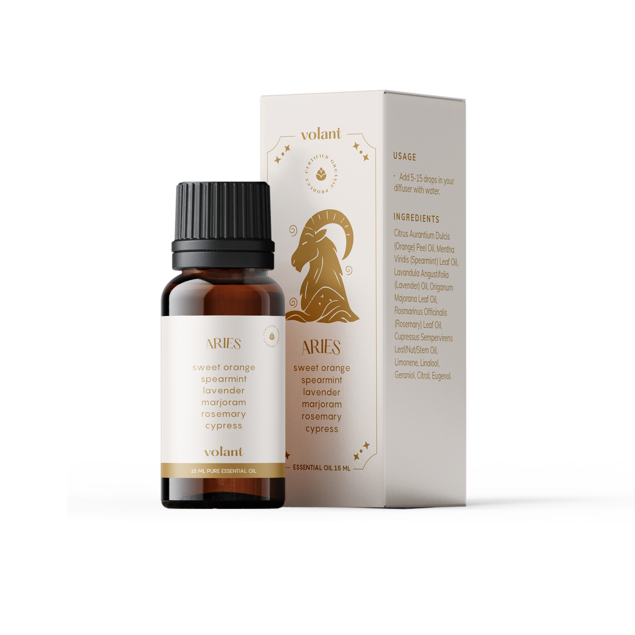 Der Aries Blend von Volant wurde für mutige Macherinnen und Macher geschaffen – für alle, die Dinge anpacken und Neues starten. Die spritzigen Noten von Sweet Orange und Spearmint schenken frische Energie, während Lavendel und Majoran dein inneres Feuer sanft ausgleichen.