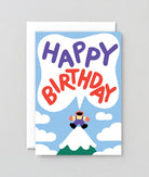 Happy Birthday – laut, bunt und mit Aussicht! Diese Karte feiert den Ehrentag mit einem ganz besonderen Blickwinkel: Eine Figur ruft vom Gipfel aus „Happy Birthday“ in die Wolken – da denkt man fast an eine Schweizer Alpenkulisse. Perfekt für alle, die hoch hinaus wollen oder einfach gute Laune zum Geburtstag gebrauchen können.